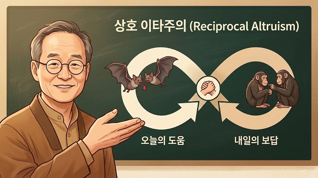 전통적인 다윈의 진화론에 따르면, 모든 생명체는 자신의 생존과 번식에 유리한 방향으로, 즉 '이기적'으로 행동해야 정상입니다. 나에게 피해(비용)가 발생하는데 남에게 이익을 주는 '이타적 행동'은 자연선택 과정에서 도태되어야 마땅하죠. 혈연관계라면 내 유전자를 남기기 위해 돕는다는 '친족 선택(Kin Selection)' 이론으로 설명이 되지만, 전혀 모르는 남을 돕는 행위는 설명할 길이 없었습니다.